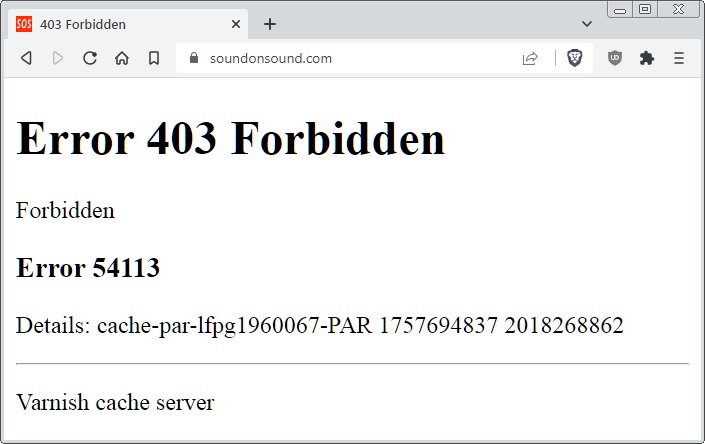 Everything had worked perfectly for years until Monday 1st Sept, when the first Error 403 error message popped up, and I haven't been able to access SOS on Brave since then.