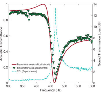 It's a clever technology, but its sound transmission characteristics appear essentially to be an interference-based notch filter as shown in the graphs in the papers (see below). According to the paper, the prototype device reflects back frequencies between 1 and 2.5kHz.