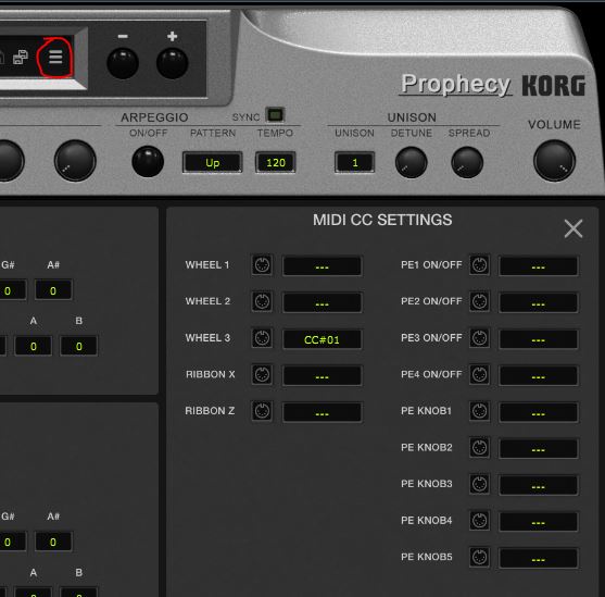 By default, CC#1 maps inversely to negative Y values on wheel 3 in the VST (ie: as you increase the CC values, wheel 3 moves 'down' from centre). I don't know what CC is required to move wheel 3 up though.