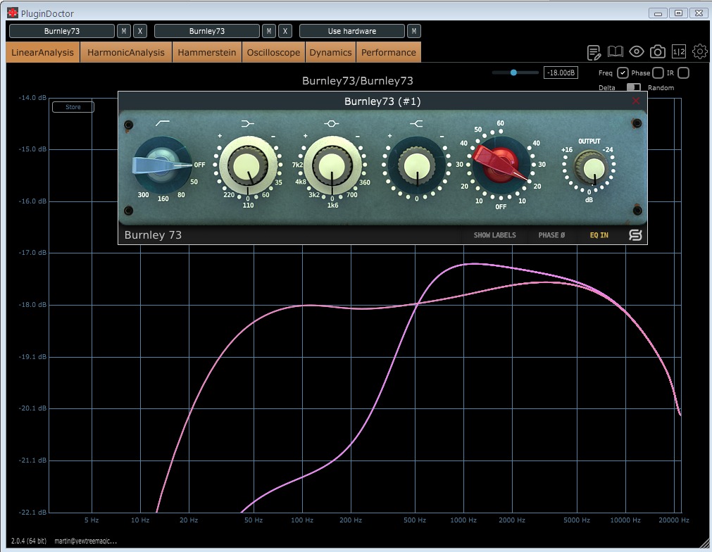 Martin Walker wrote: ↑Thu Nov 24, 2022 11:31 pm Well here's the frequency response with your settings (I have both Burnley73 and PluginDoctor):