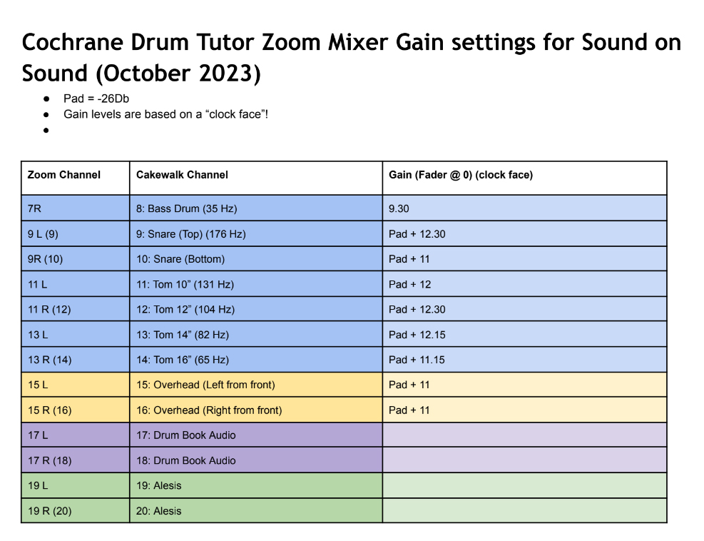 So I have the following set up: Zoom L20 Mixer https://zoomcorp.com/en/us/digital-mixe ... trak-l-20/Adam T8V Monitors https://www.adam-audio.com/en/t-series/t8v/ and a range of Audix mics on an acoustic drum kit. No other links in the audio chain so to speak.