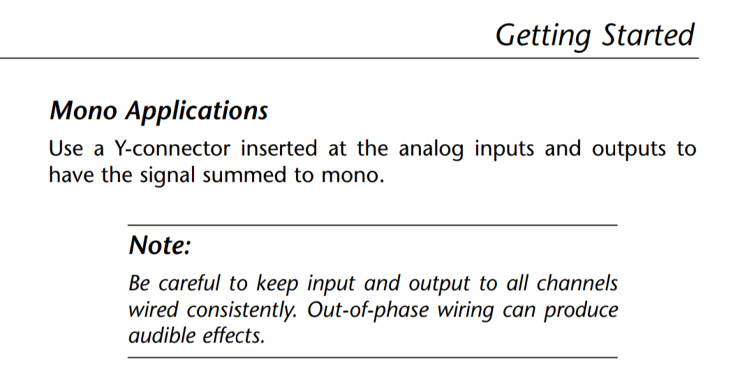 Not so much a 'warning' as helpful information that the input sockets are half-normalled..I haven’t owned any Lexicon stuff that had this, and they’ve all worked fine, my 224, and my LXP1.