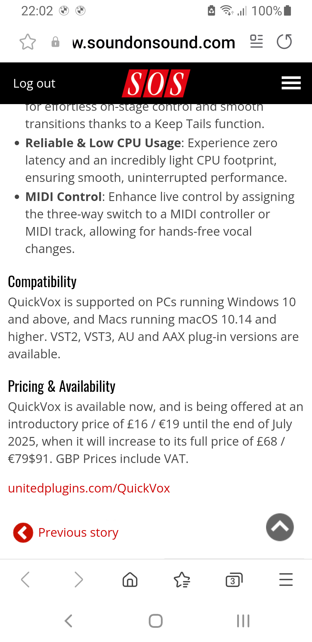 QuickVox is available now, and is being offered at an introductory price of £16 / €19 until the end of July 2025, when it will increase to its full price of £68 / €79$91. GBP Prices include VAT.