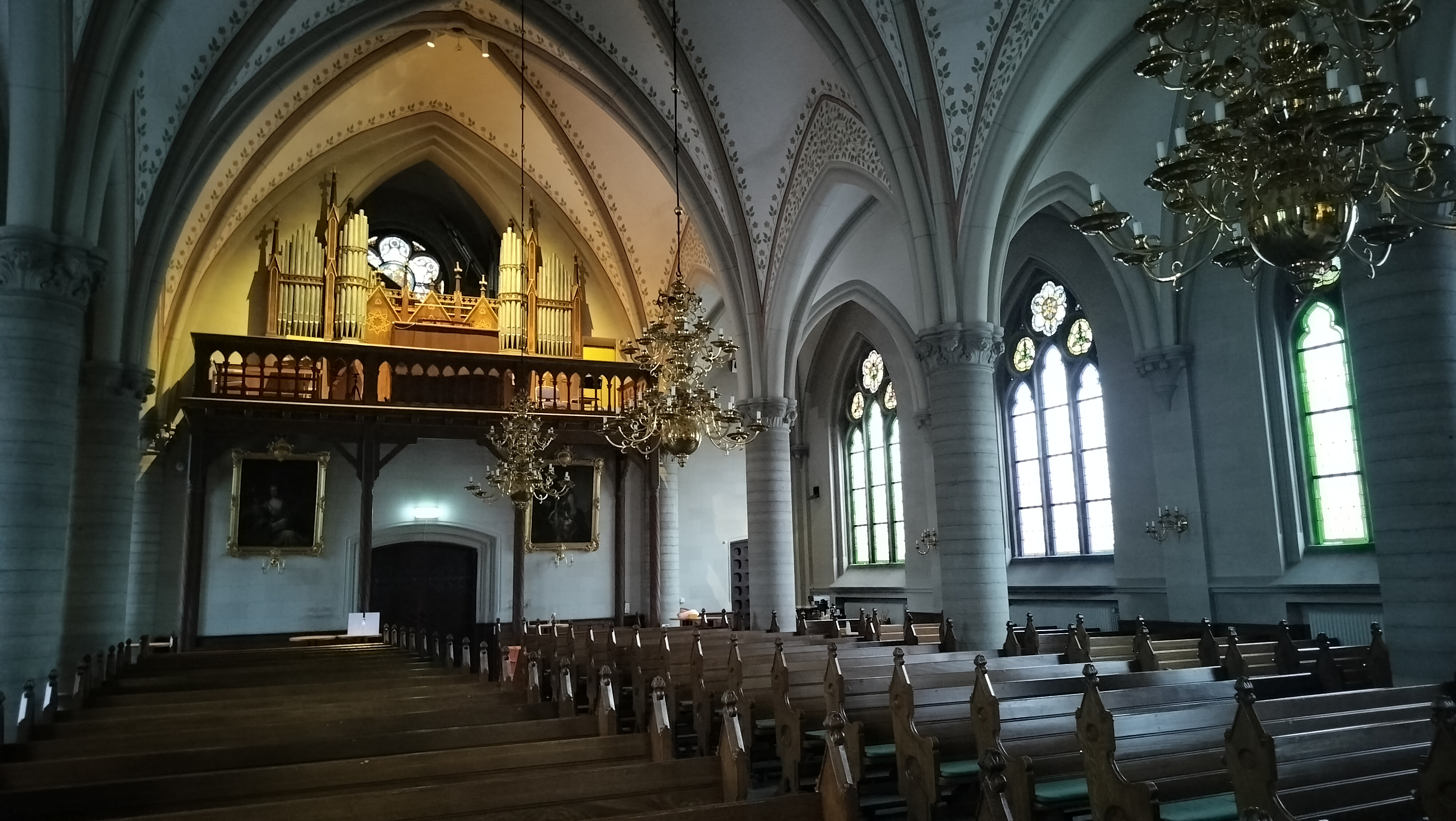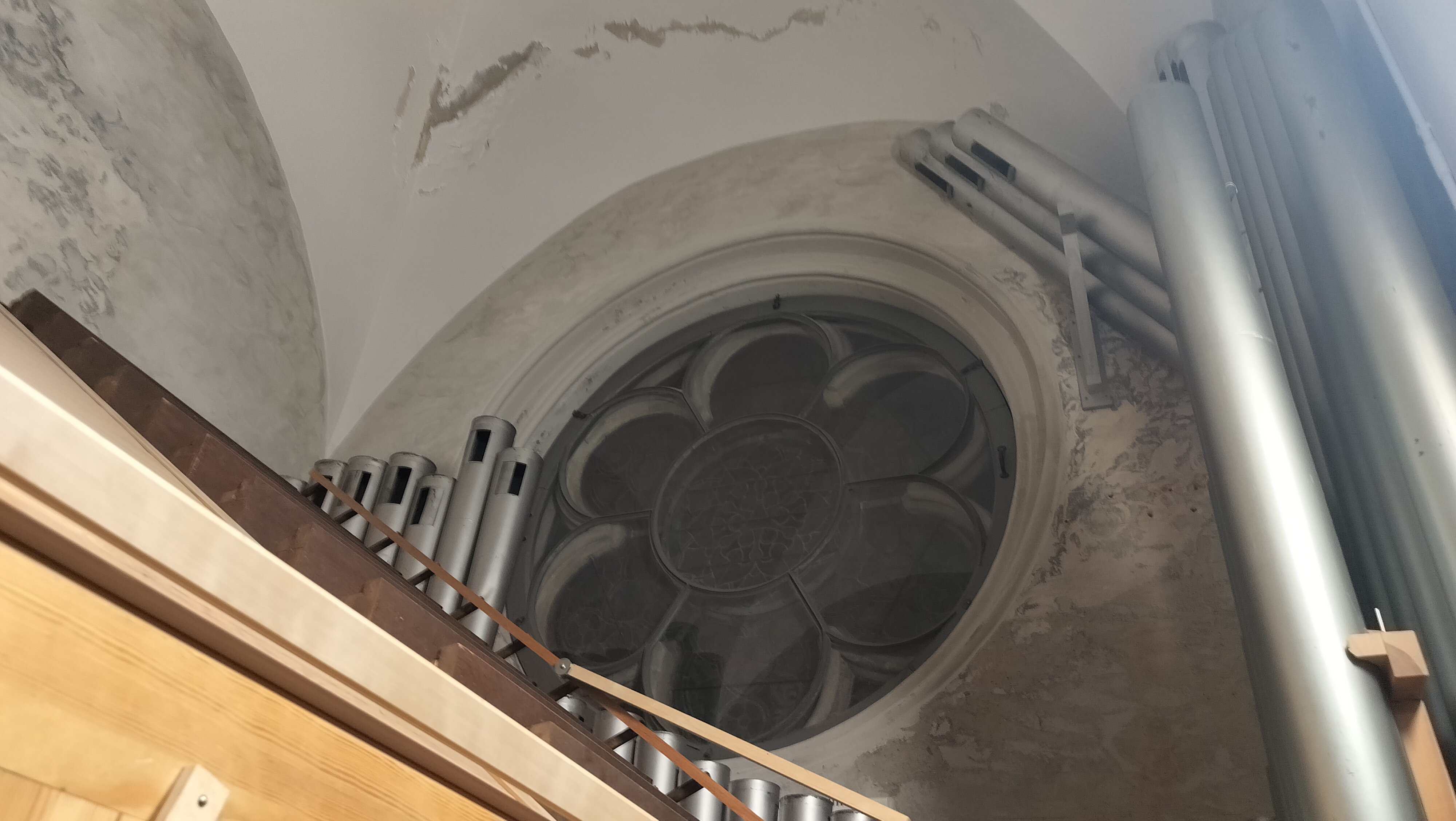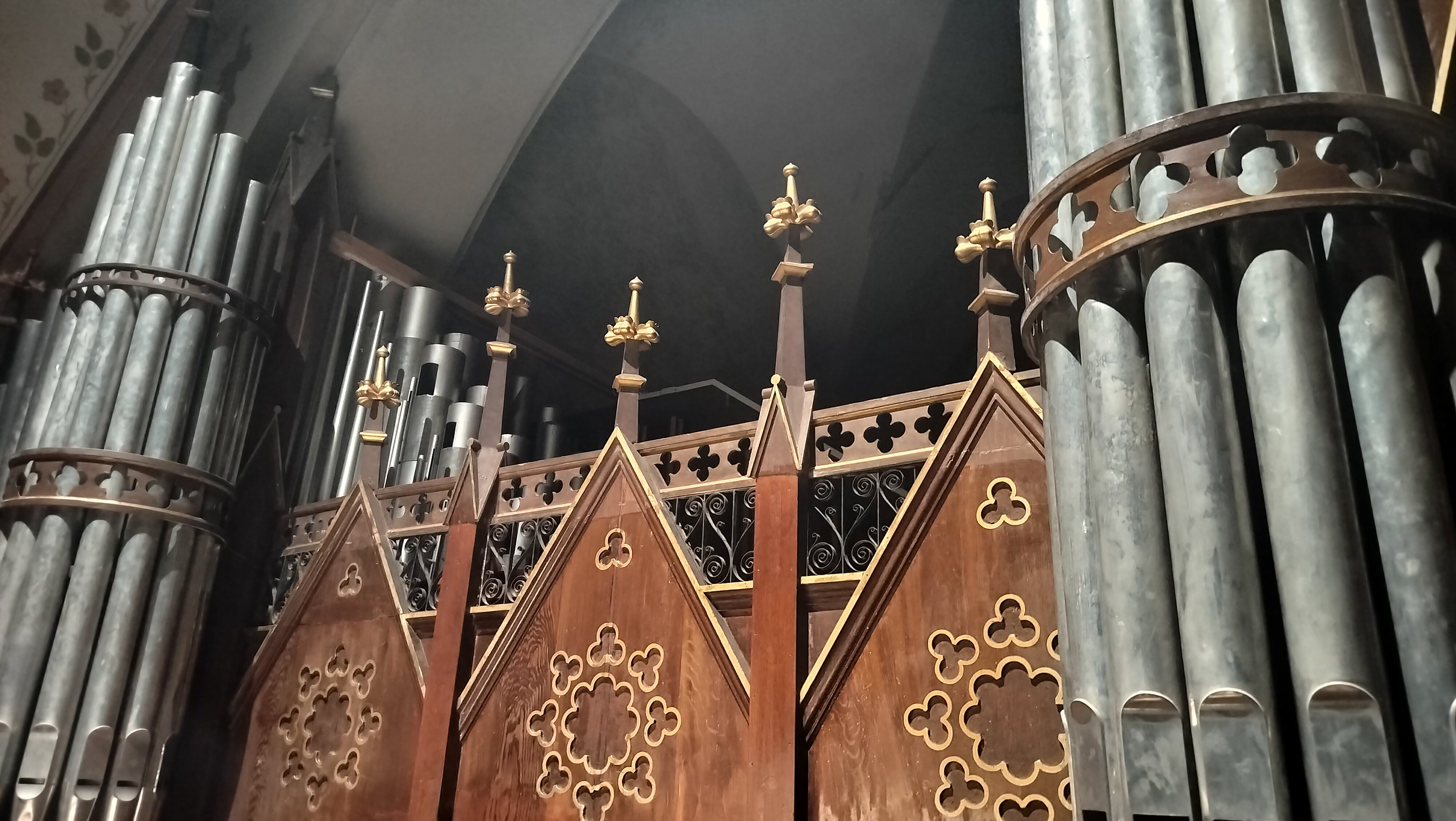 the view of the organ loft from a distance: